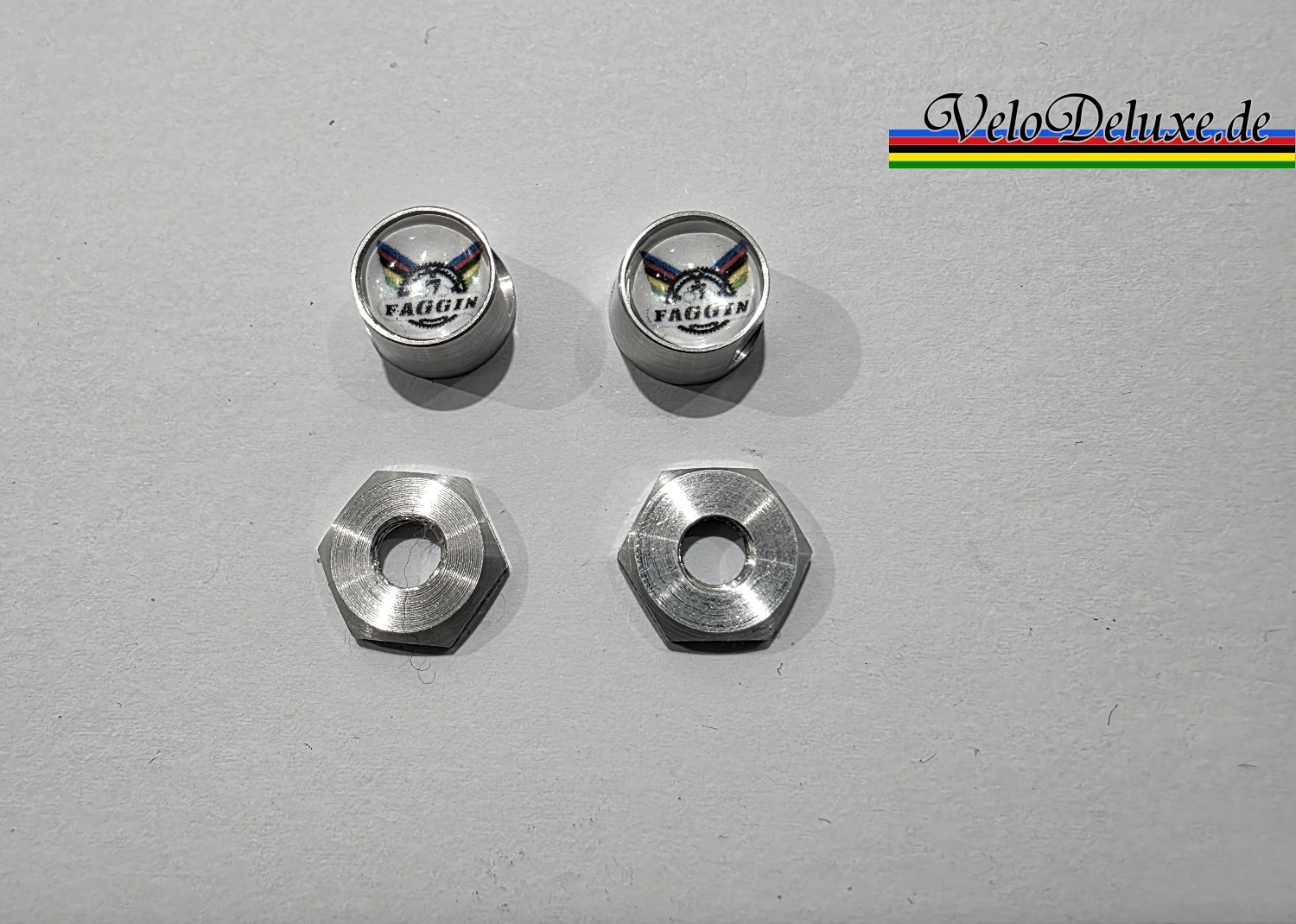 Basierend auf den Campagnolo Cobalto Bremsen ist dieses neue Set Cobalto Muttern eine wunderschöne Weiterentwicklung, um sein Rad ein ganz besonderes Extra zu geben. Die neuen „Cobalto“ Muttern sind mit den Logos der Radsport Legenden verziert und bieten auf diese Weise die Möglichkeit die Bremse noch individueller und angepasster aussehen zu lassen.