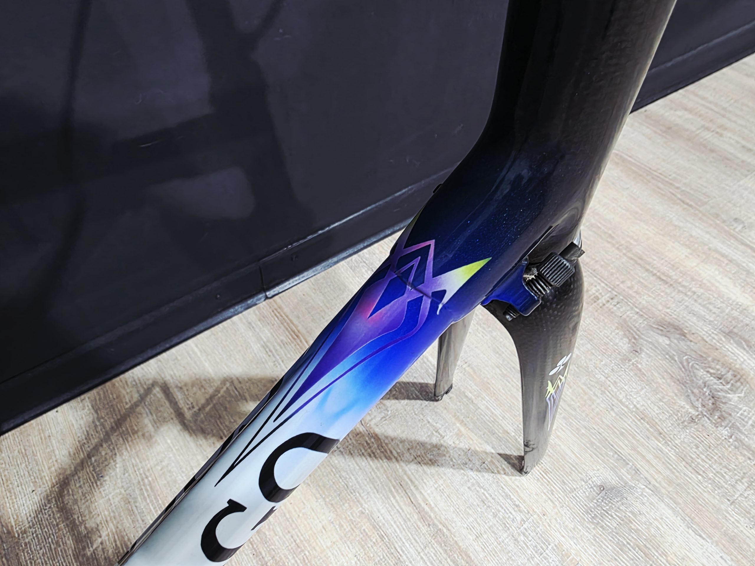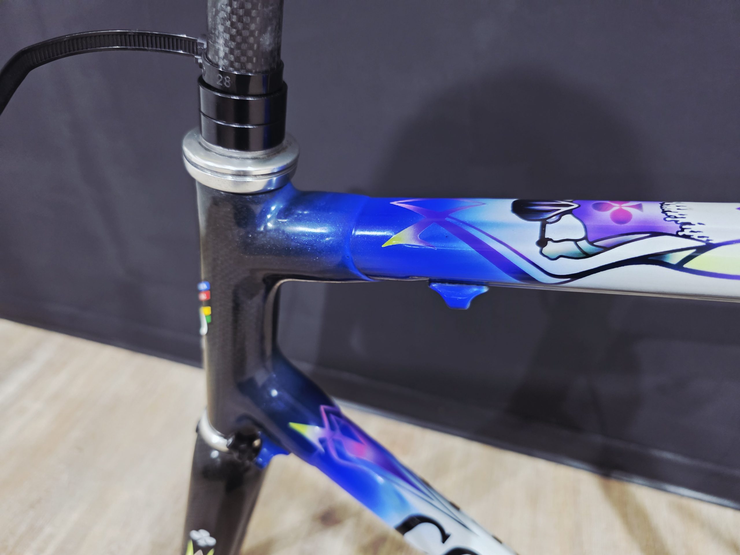 Das Rahmenset aus Carbon ist in einem super Zustand und in der begehrten AD10 Lackierung.