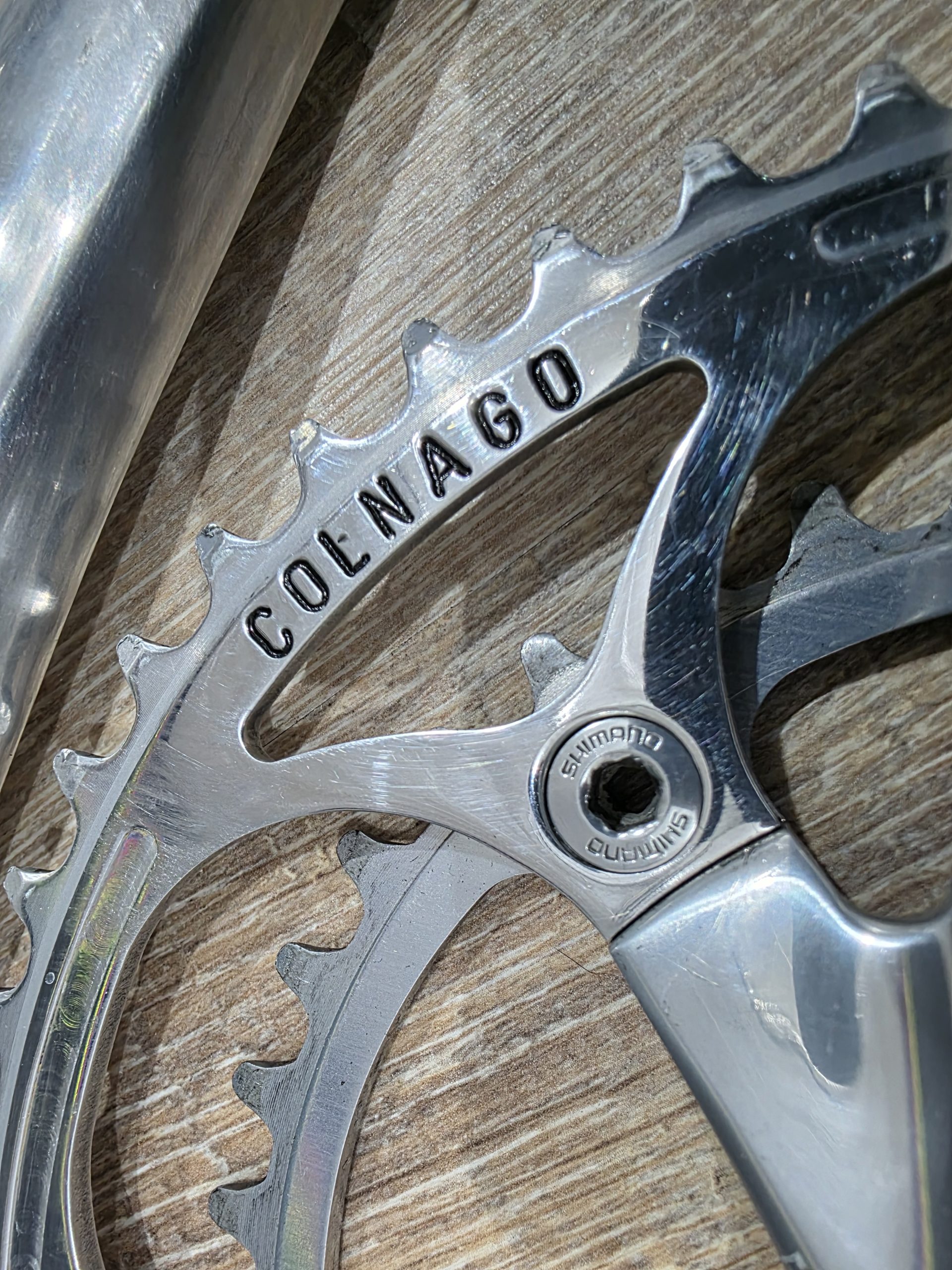 Das Kettenblatt ist poliert, gefräst und mit Colnago pantografiert.