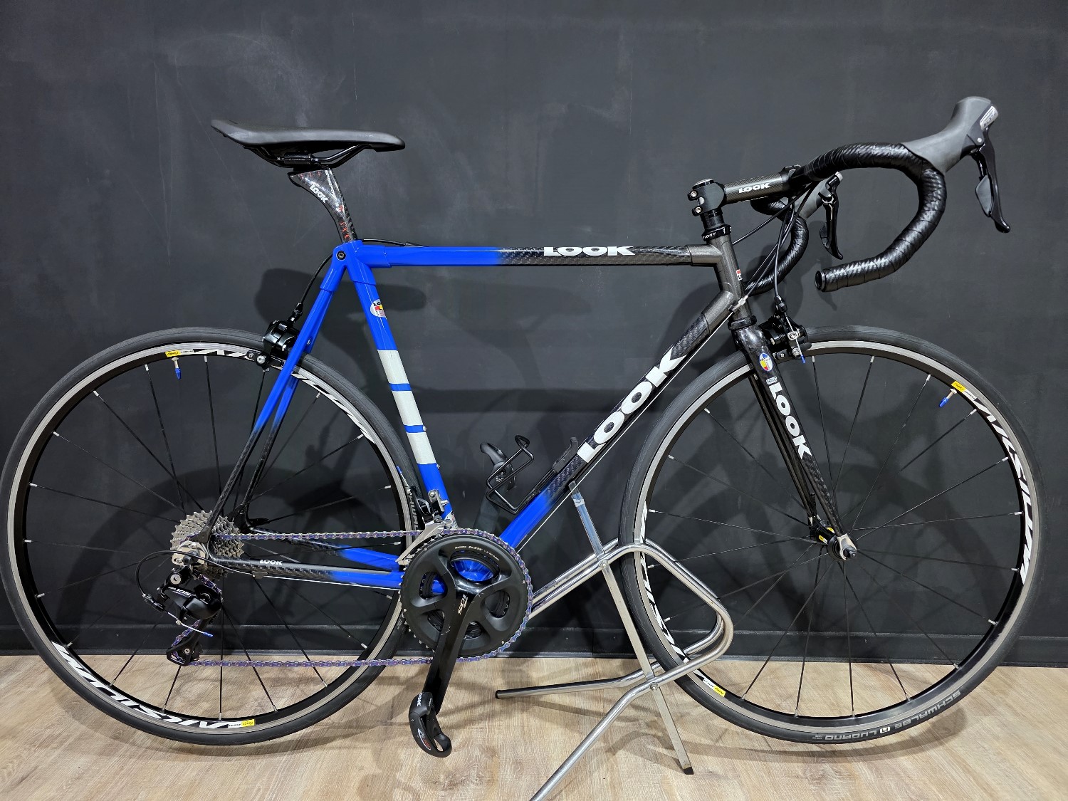 Zu verkaufen ist ein sehr gut erhaltenes Look KG 281 Carbon Rennrad mit einer Rahmenhöhe von 56 cm C-T gemessen.