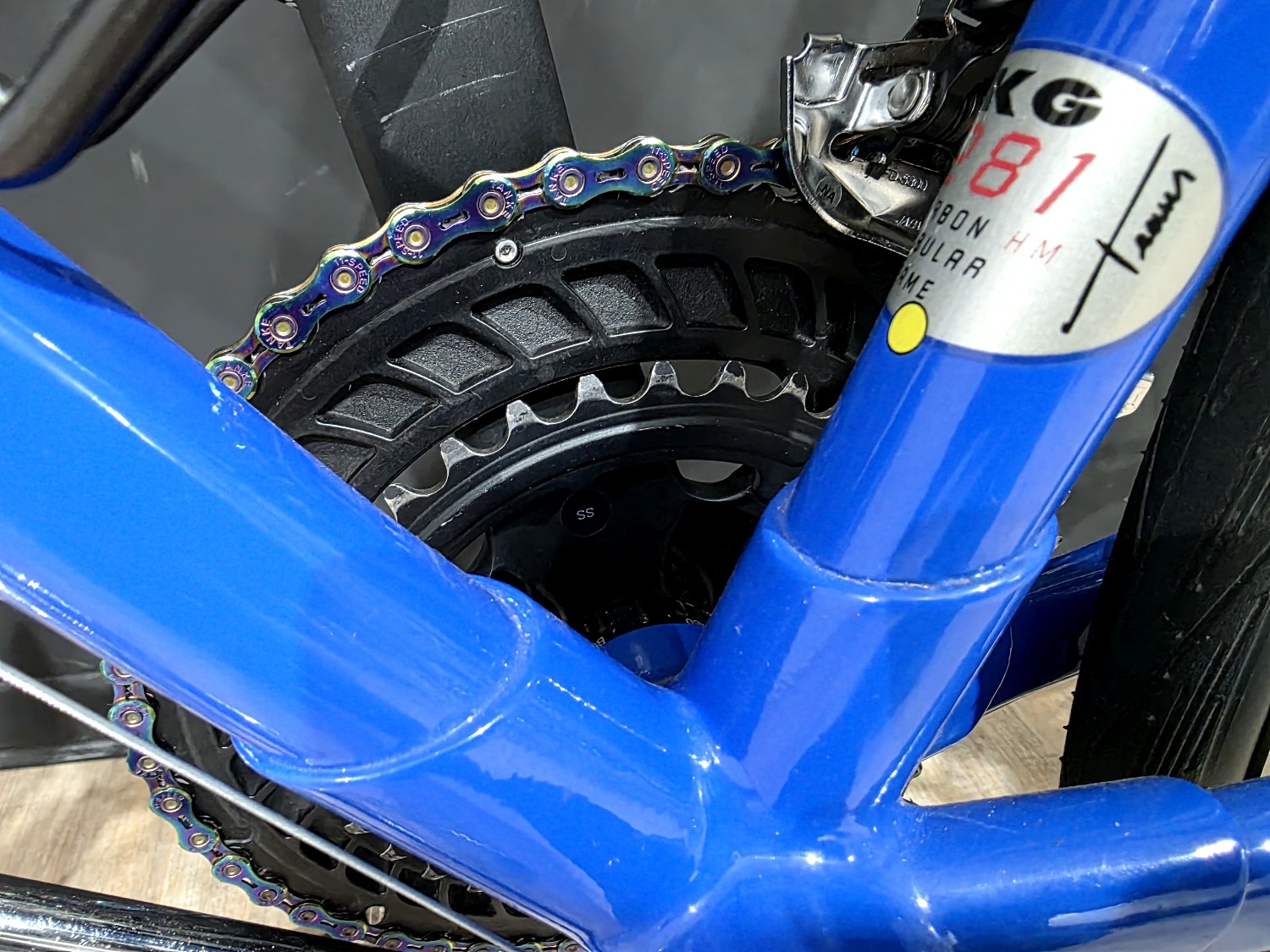 Das Oberrohr ist dreieckig geformt und das Unterrohr fünfeckig.