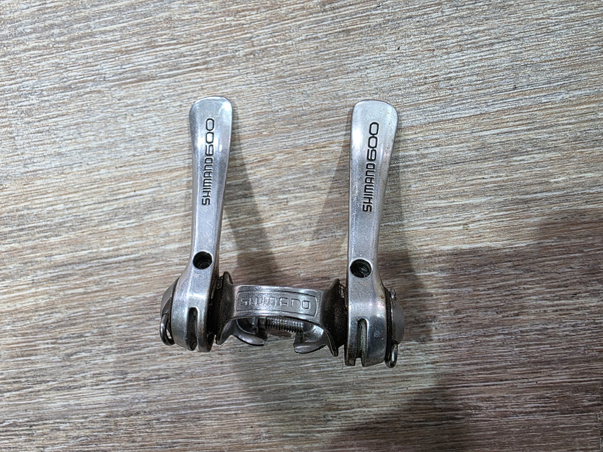 Zu verkaufen ist ein gut erhaltenes Set Shimano 600 Schalthebel mit Schelle.