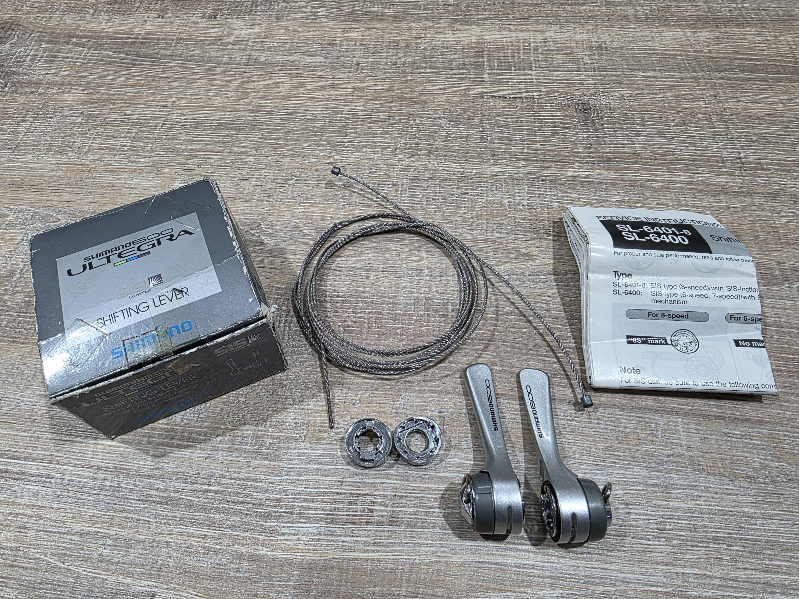 Zu verkaufen ist ein neuwertiges Set Rahmenschalthebel aus der Shimano 600 Ultegra (Tricolor) Gruppe.