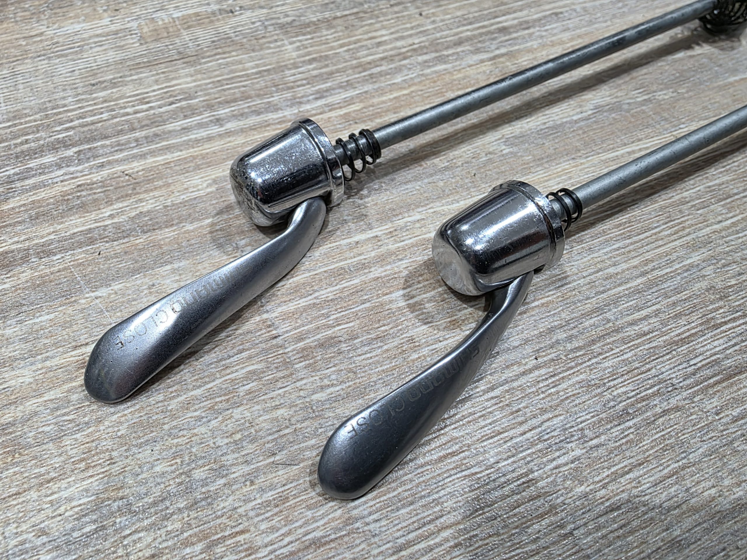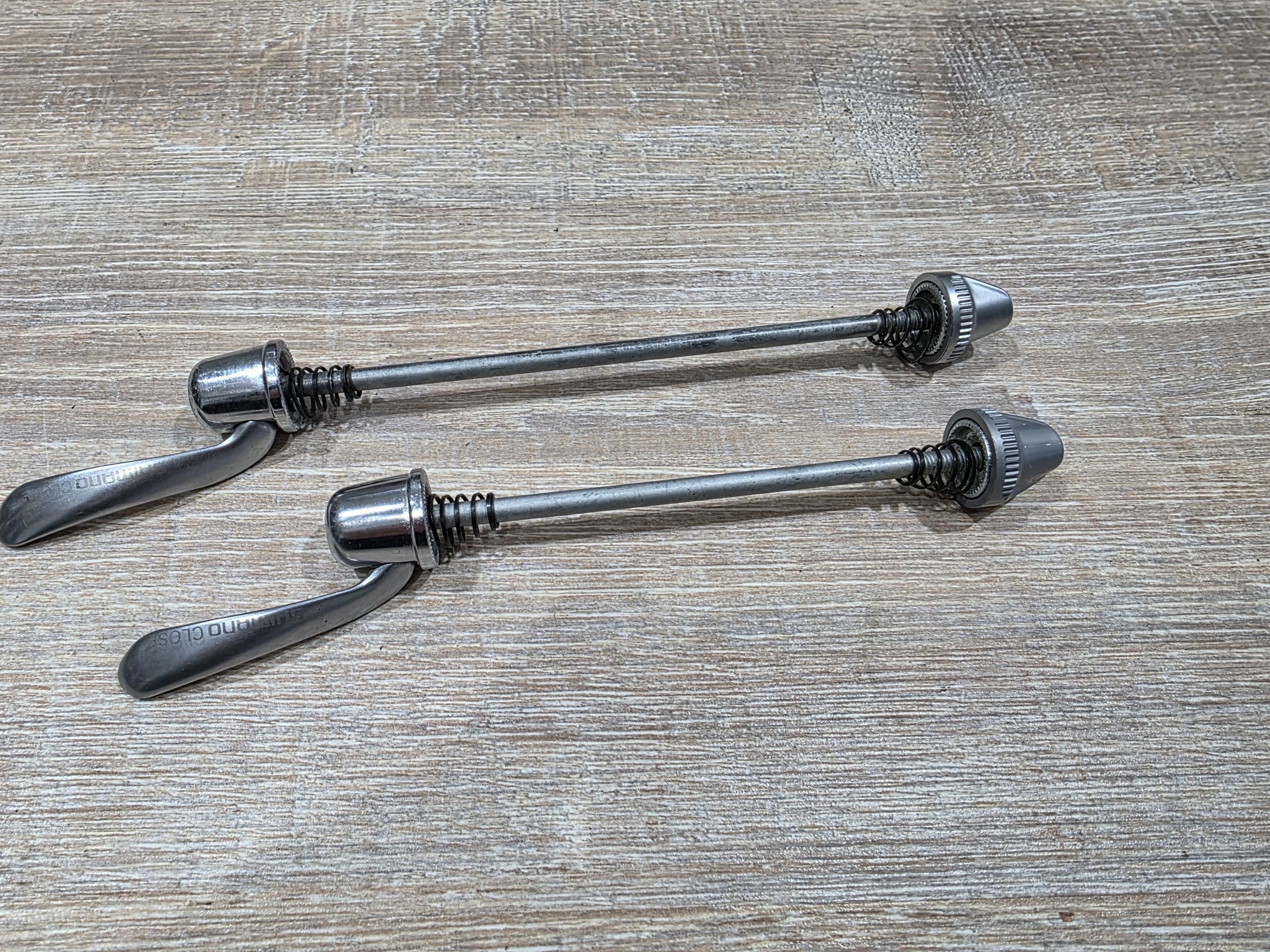 Zu verkaufen ist ein Set Shimano 600 Ultegra Schnellspanner für die Tricolor Gruppe.