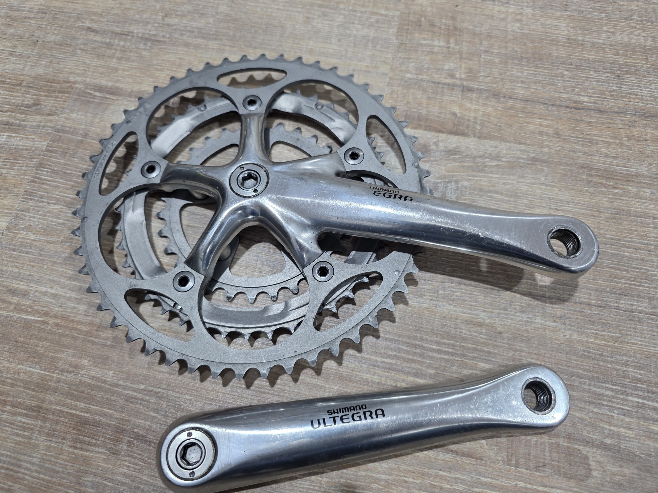 Zu verkaufen ist eine Kurbel aus der Shimano Ultegra Gruppe mit der Bezeichnung FC 6503 für Triple (3 Kettenblätter an der Kurbel) Schaltungen.