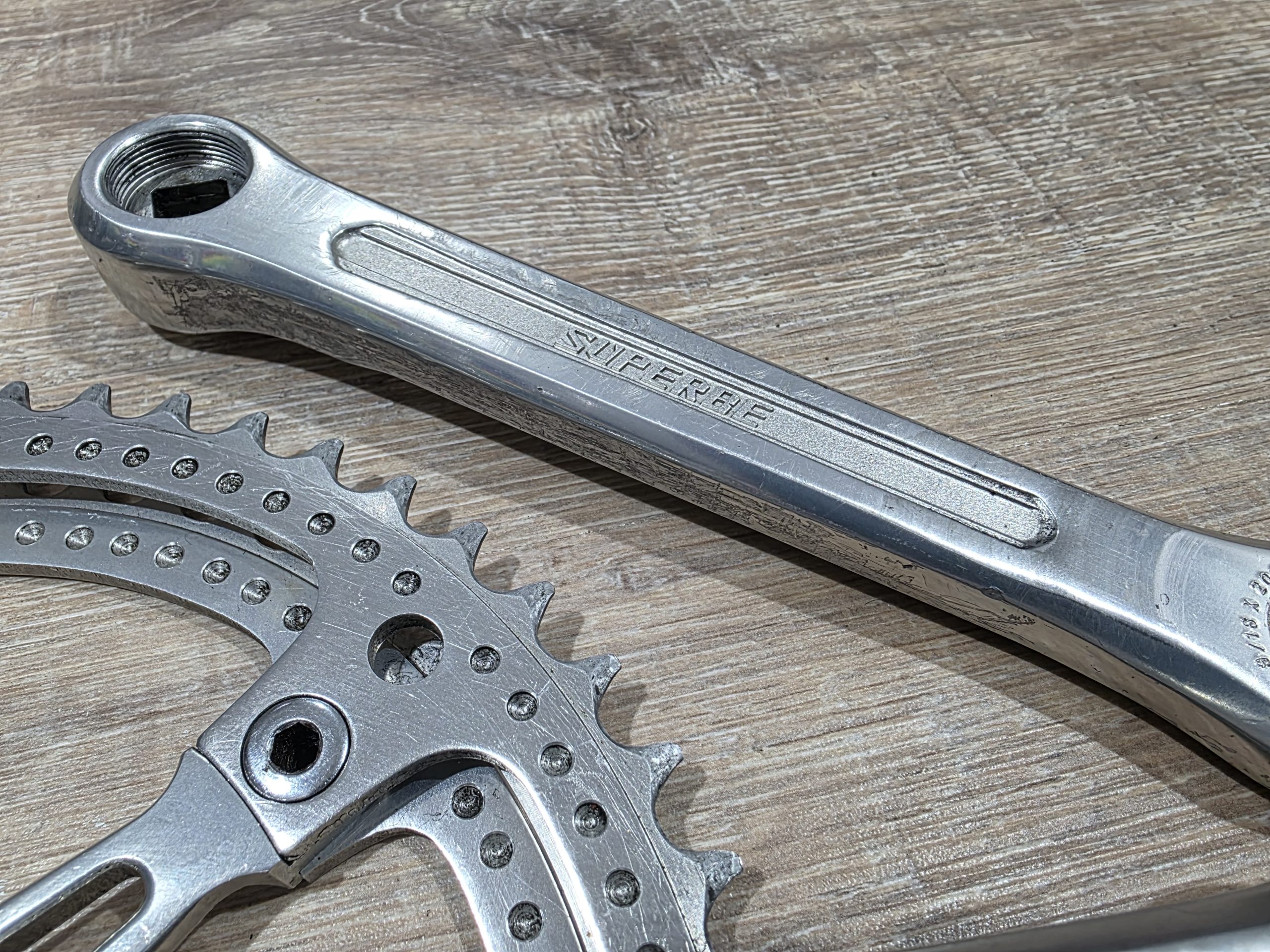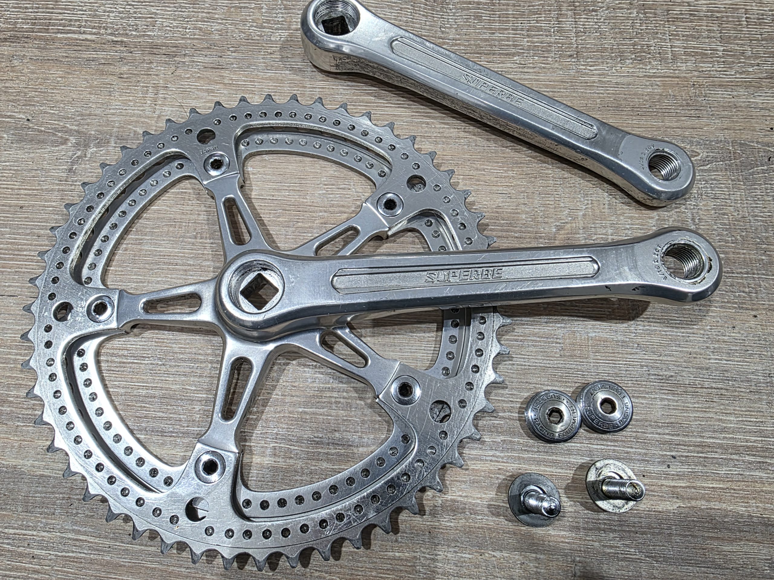 Zu verkaufen ist eine schöne Suntour Superbe Kurbel mit den originalen Kettenblättern aus der 1. Generation Gruppe.